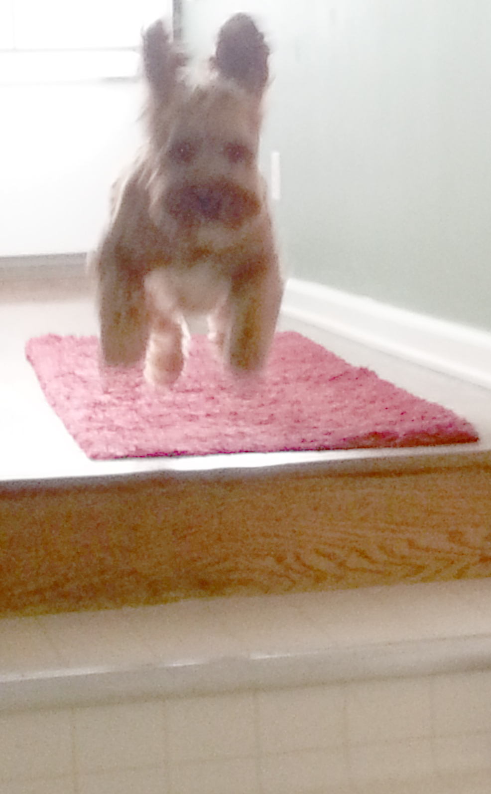 I finally got it! Or more accurately, Mom got it with her phone. And in case you have any doubt as to the veracity of this photo, note the upturned ears and the fact that if he were standing in the floor and not leaping to greet you, given the proportions of his body to the rest to of the shot, he would be a 100 pound Cockapoo.
