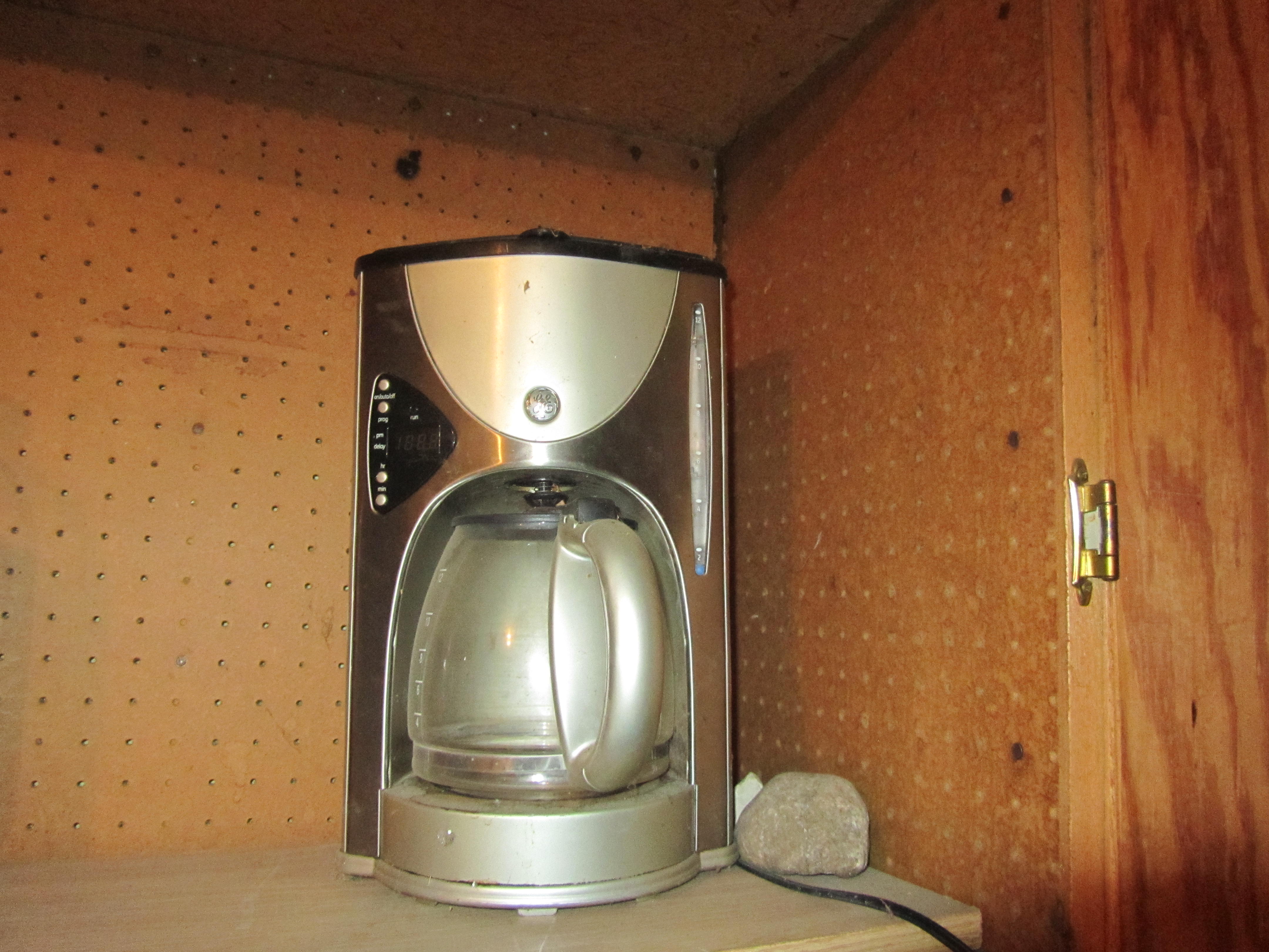 Only 2 of the 4 pairs are actually labeled. But they just happen to be my size waist exactly. The others I will try on when they come out of the wash (they are in there right now with the blanket. I mean, they did come out of the garage, so a good washing was totally necessary). And if those two pairs don’t fit, well, I’m still two pairs up, so suck it. Then there’s the coffee maker.