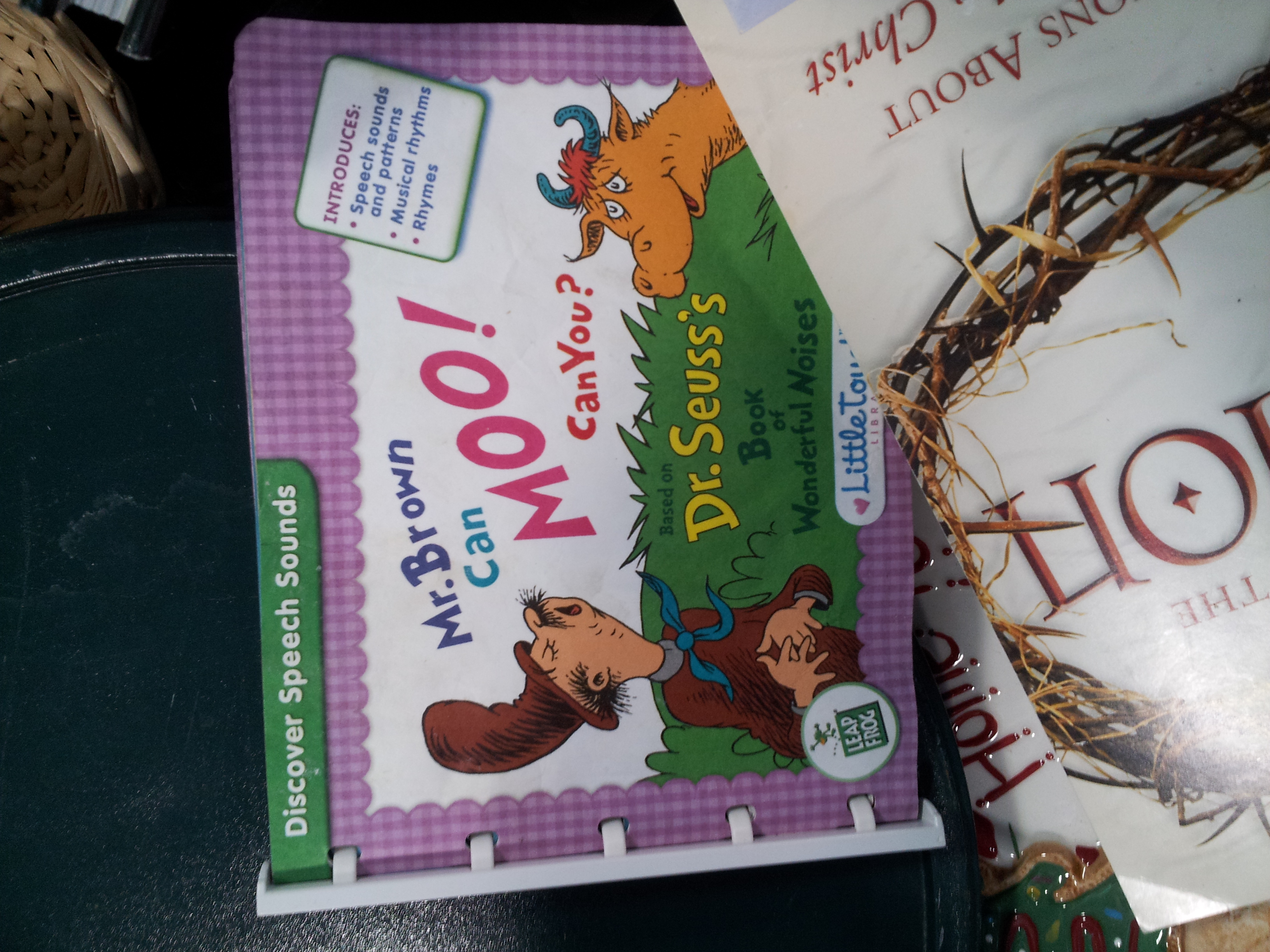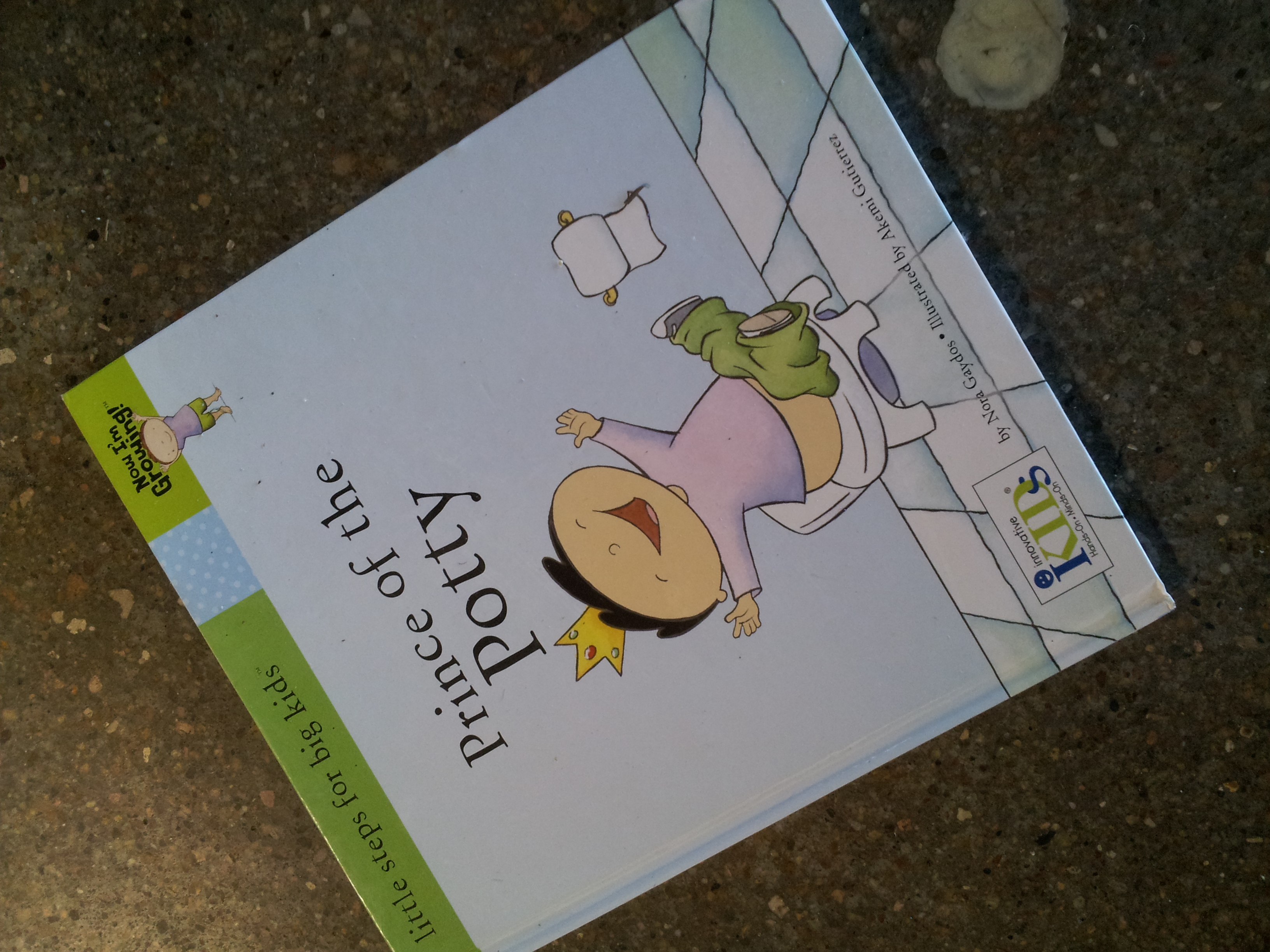 Then we have the copious amounts of literature and products devoted to defecation. Here’s a couple of the dozens I found. One can only discern that once the kid gets his first pair of Pull-Ups, mothers across the country cast various potty training products out their windows in droves: