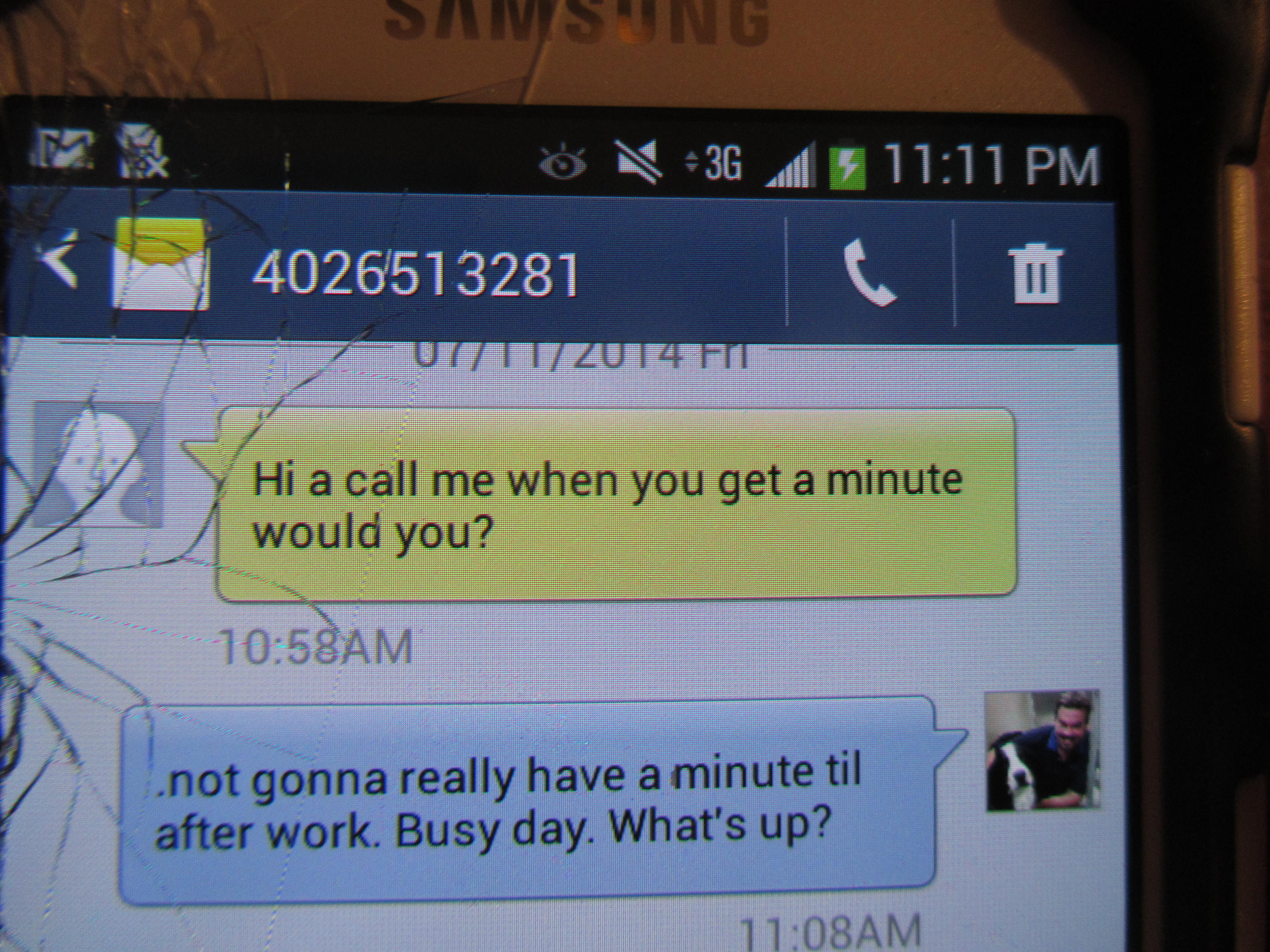 I saw this thing on Facebook a few months ago that celebrated the fact that many people have made friends in various social networking avenues with people they’ve never actually met in person. This is overwhelmingly true for me in the Open Group for Bedlam Farm, a group solely devoted to creativity. One of my best “friends” there is a woman named Lisa and she has an absolutely fantastic blog called Just Ponderin’ in which she examines all facets of her personal life, from her family to her dogs and on and on. You can get to the blog by going to the left hand side of this page and clicking on the link under Blogs I Follow. And she’s really, really funny. Full disclosure: I stole the title Fun with Texts from her (you can read her contributions to the subject here) and as I seem to be posting more and more about my own experiences with text messaging, I should probably come up with my own title. I thought about it and haven’t come up with much. There’s just not much you can do with the word “text.” I thought about “Text-book Examples” or maybe “I Wanna Text You Up.” Not really catchy category titles, so I’m just gonna go with Text Ed. See? That’s not really catchy either, but anti-thievery is one of the laws of writing and I can’t outright permanently steal Lisa’s. So Text Ed it is.
