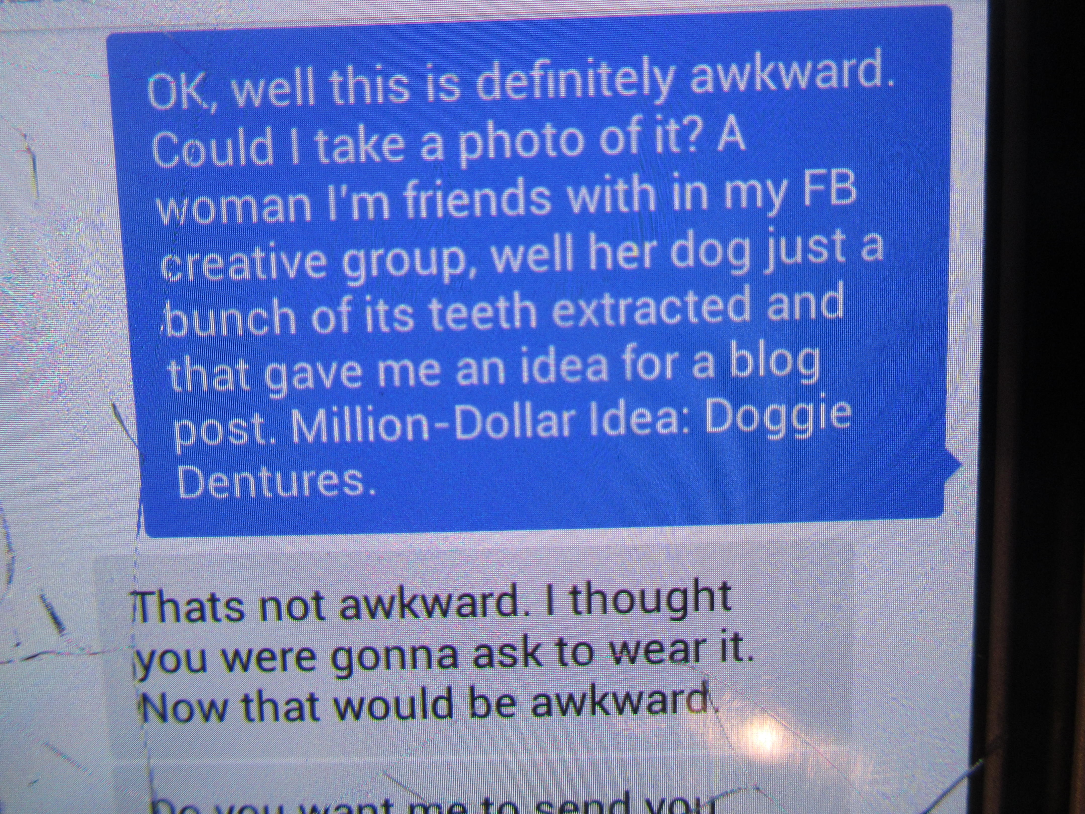 He asked that I respect his anonymity in posting a picture of the dentures. Which kind of bums me out because he should totally get credit for that joke.